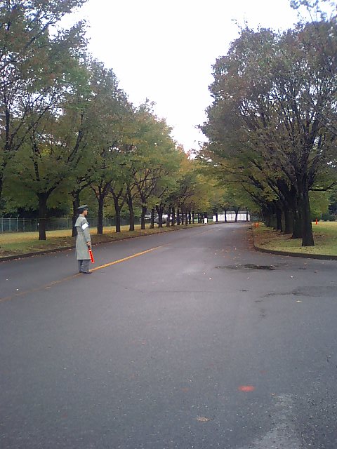 正門を入って、まっすぐ伸びている車道。/右折ポイント。