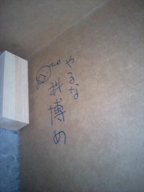展示台の下の隅っこの方にも落書き。